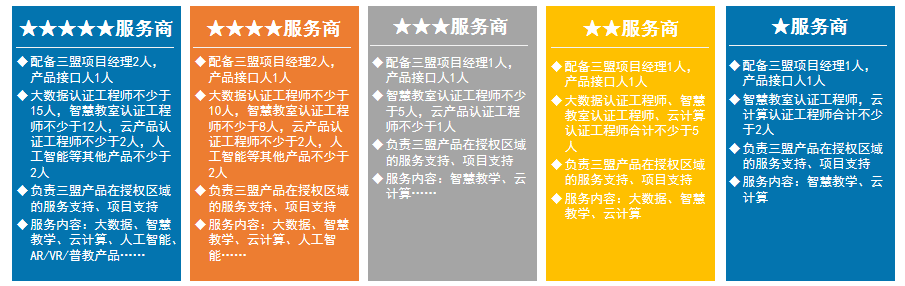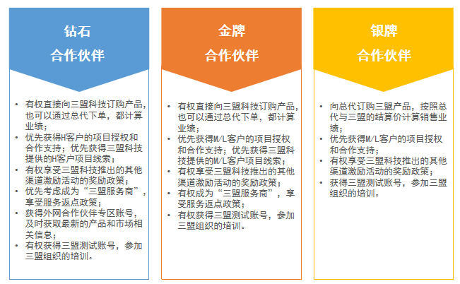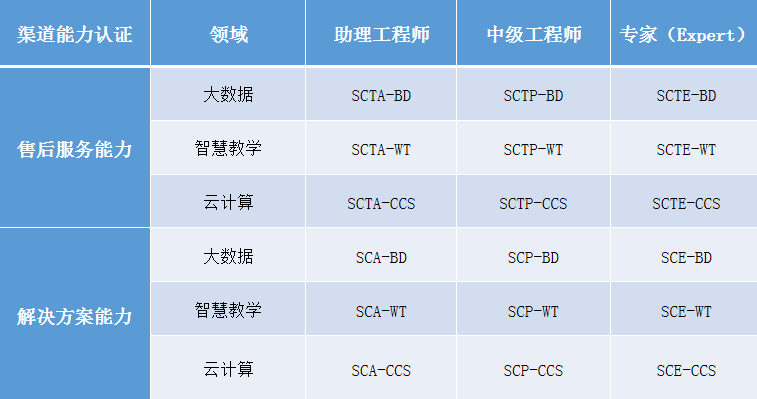 按照技術(shù)應(yīng)用場(chǎng)合的不同,充分考慮客戶項(xiàng)目不同階段及層次的需求,三盟科技為渠道合作伙伴提供了2個(gè)場(chǎng)景(售后能力認(rèn)證、解決方案能力),3個(gè)等級(jí)從助理工程師到專家的的認(rèn)證體系。