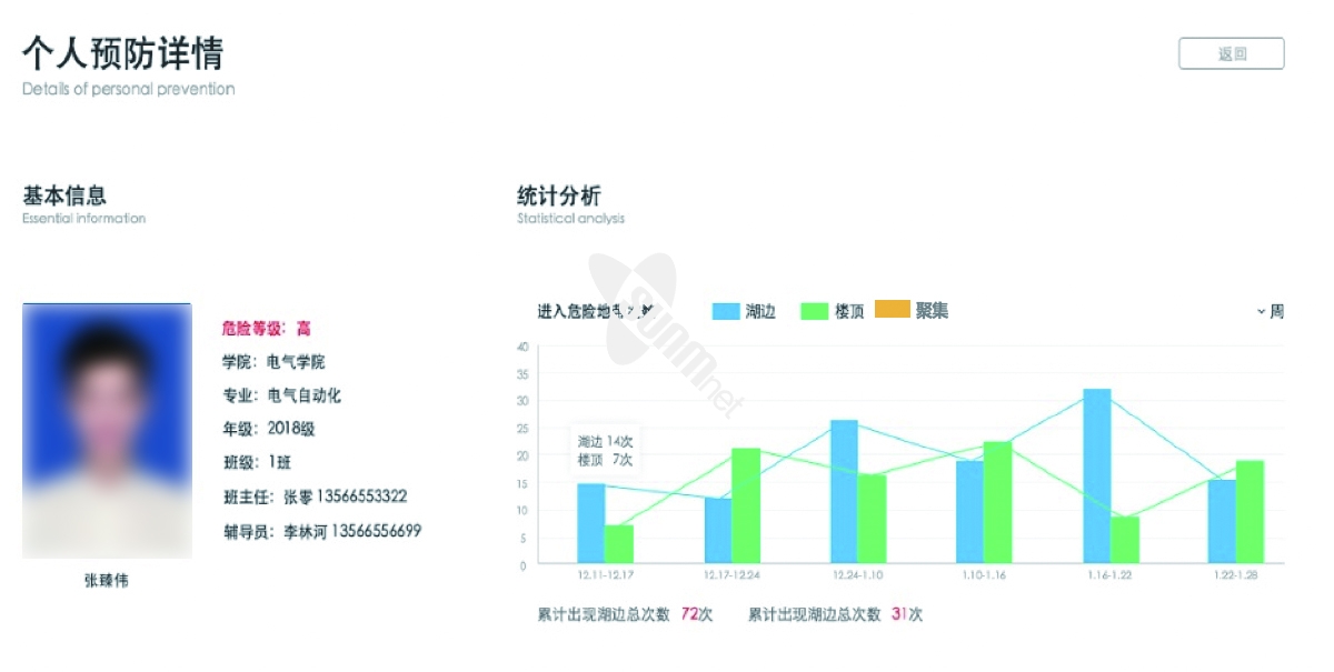 分析重點(diǎn)監(jiān)控學(xué)生的數(shù)據(jù),對比以往軌跡數(shù)據(jù),分析學(xué)生危險(xiǎn)行為是否有所改善,輔助監(jiān)管人員采取應(yīng)對措施。