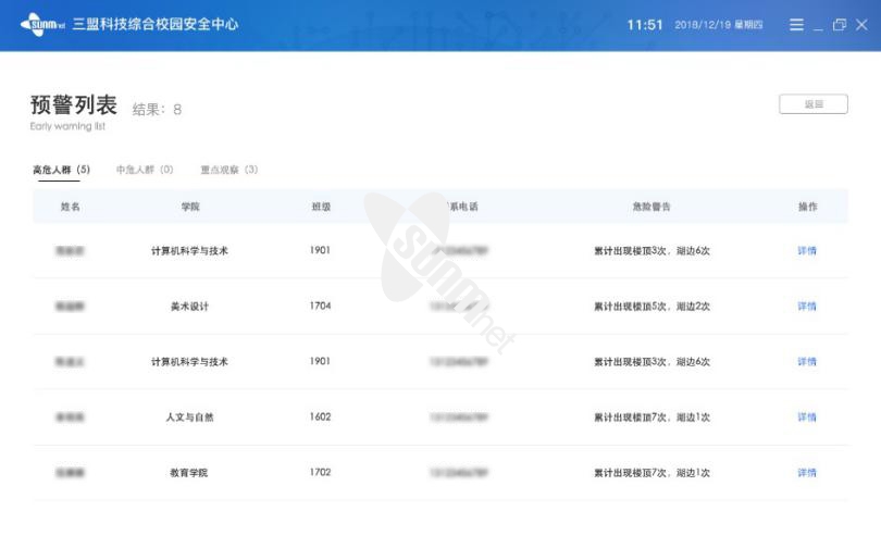 針對重點(diǎn)監(jiān)控人群進(jìn)行綜合分析,按照預(yù)警規(guī)則生成預(yù)警記錄,協(xié)助監(jiān)管人員及時(shí)制止危險(xiǎn)事宜的發(fā)生,把風(fēng)險(xiǎn)和危害降到最低。