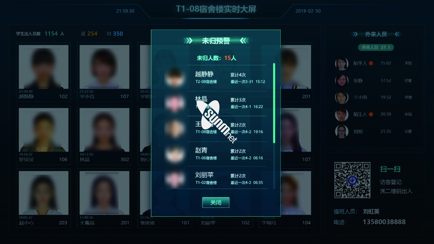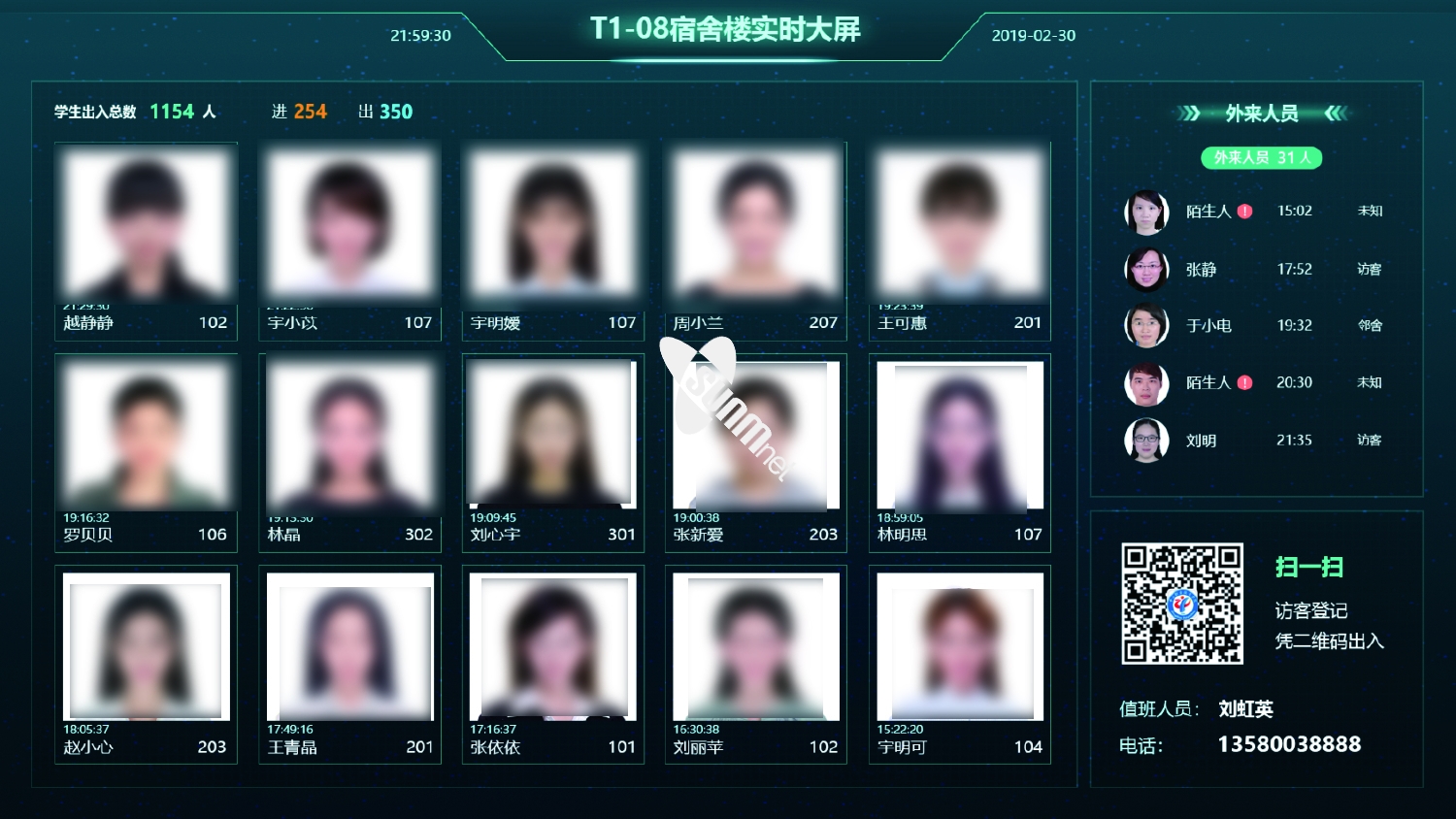 相較于單純地用于“解鎖”,智慧校園“一臉通”通過大數(shù)據(jù)分析技術(shù),分析學(xué)生夜歸、未歸數(shù)據(jù),及時(shí)預(yù)警,防患于未然,通過考勤大屏、“刷臉”訪客管理、未歸預(yù)警等,簡單、實(shí)時(shí)把控宿舍整體狀態(tài)。