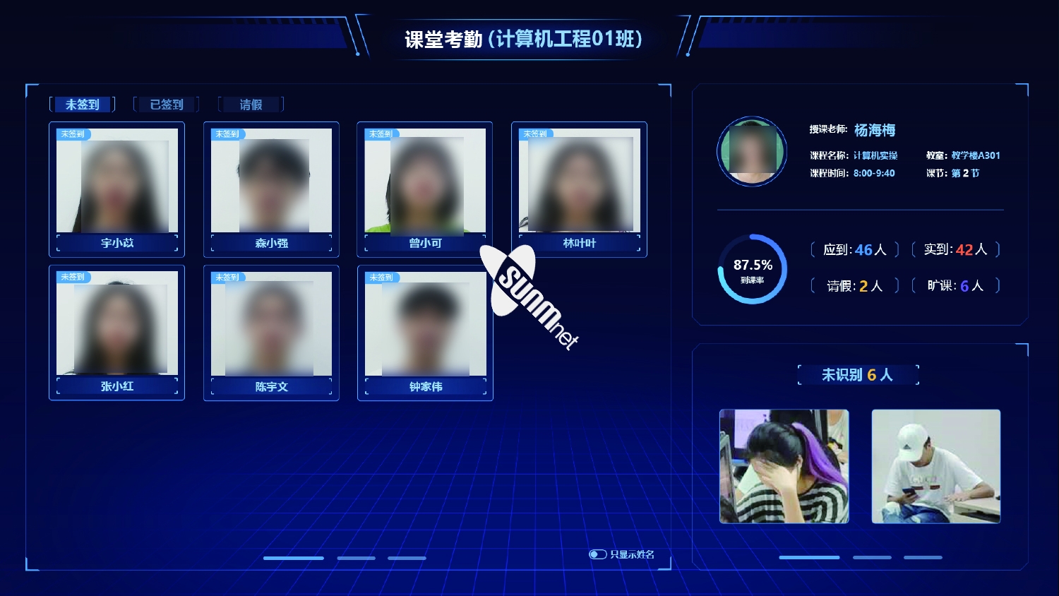 課堂無感知考勤解決方案,人臉識(shí)別服務(wù)平臺(tái)提前采集學(xué)生的人臉庫,系統(tǒng)可根據(jù)上課的考勤時(shí)間進(jìn)行設(shè)置,在正常上課開始前,通過軟件平臺(tái)的課堂無感考勤模塊啟動(dòng)抓拍、識(shí)別并形成考勤結(jié)果,系統(tǒng)自動(dòng)將當(dāng)前課堂的學(xué)生出勤情況進(jìn)行統(tǒng)計(jì),以報(bào)表或圖形化的界面顯示,使學(xué)生出勤情況一目了然,并且人臉識(shí)別能杜絕頂替出勤情況的發(fā)生,不占用課堂教學(xué)時(shí)間,全流程自動(dòng)監(jiān)控,逃課、遲到、早退系統(tǒng)自動(dòng)記錄,顯著提升學(xué)生出勤率,提高教學(xué)質(zhì)量。