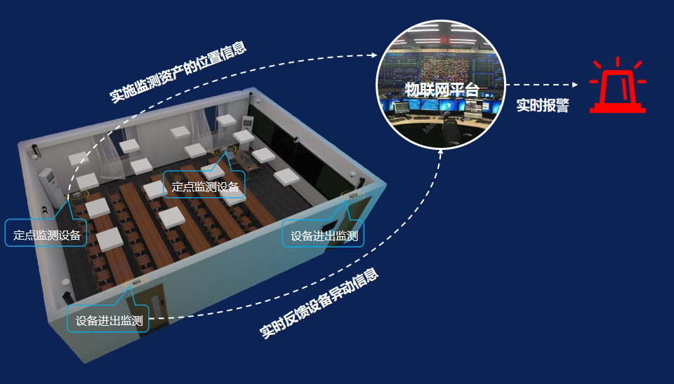 通過RFID技術的全生命周期資產(chǎn)管理模塊,為每個被管理設備貼上對應的有源或無源標簽,實時檢測設備的在位狀態(tài),設備離位告警,到達資產(chǎn)防盜的目的,同時還能實時統(tǒng)計設備數(shù)據(jù),達到資產(chǎn)自動盤點,解決了人工盤點費時費力的現(xiàn)象。
