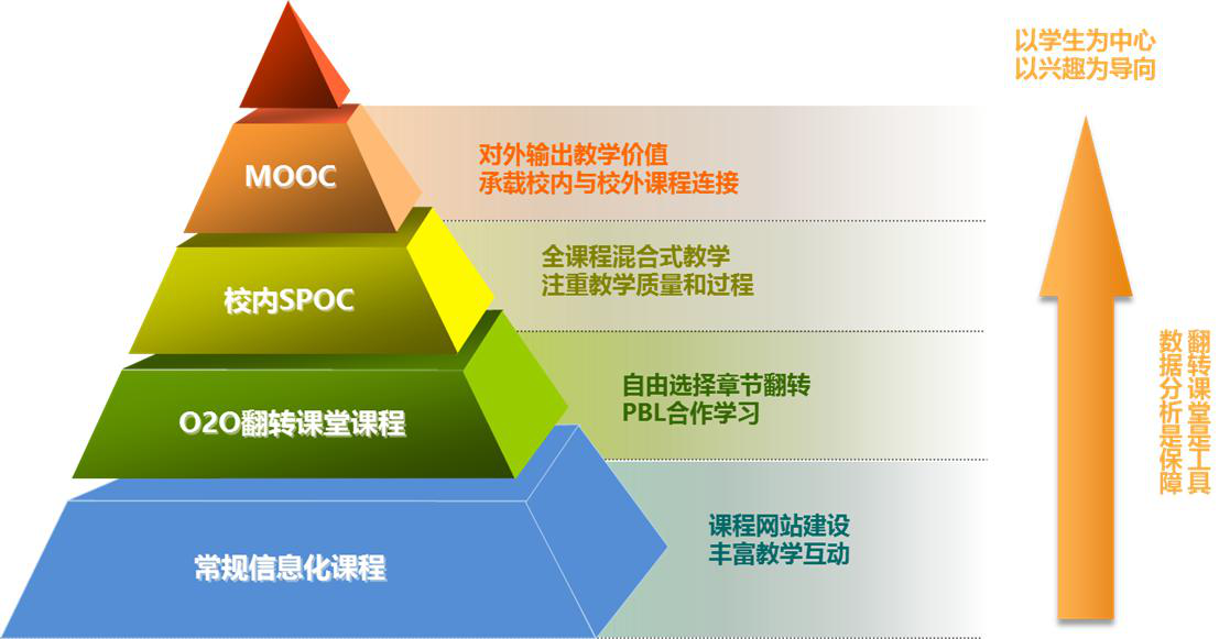 學(xué)校的課程眾多,不同課程、不同教師采用的教學(xué)方式都有所差別。公共課、選修課、通識(shí)課,適合采用網(wǎng)絡(luò)化MOOC的模式進(jìn)行教學(xué);專業(yè)課、必修課,教學(xué)要求更高,適合采用線上網(wǎng)絡(luò)教學(xué)和課堂教學(xué)相結(jié)合的混合式教學(xué)模式;翻轉(zhuǎn)課堂貫穿課前、課中、課后學(xué)習(xí)的全過程,將學(xué)習(xí)的決定權(quán)從教師轉(zhuǎn)移給學(xué)生。然而,現(xiàn)有的教學(xué)環(huán)境、教學(xué)平臺(tái)很難滿足多場(chǎng)景教學(xué)需要,同時(shí),教學(xué)通過不同平臺(tái)進(jìn)行,無法統(tǒng)一管理,課程、資源、教學(xué)數(shù)據(jù)分散,教學(xué)資源不易保存。