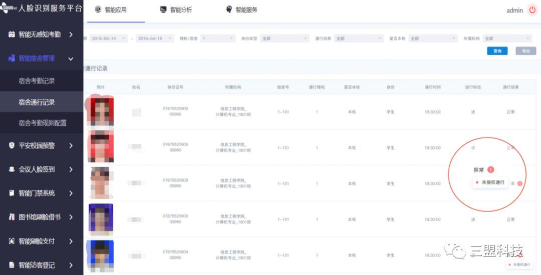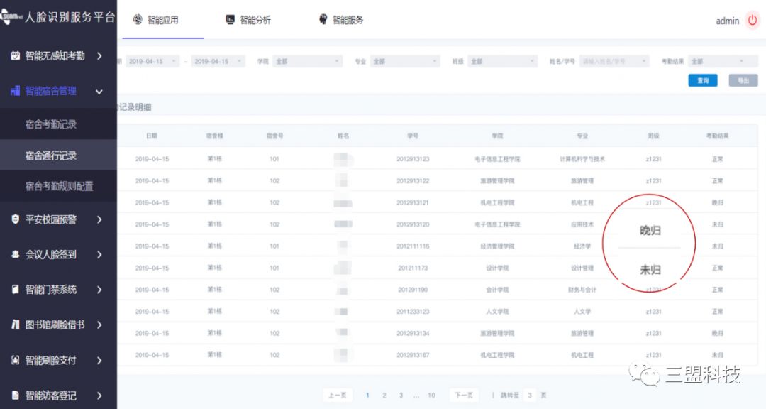 平臺(tái)對(duì)出入宿舍的人員進(jìn)行精細(xì)化管理