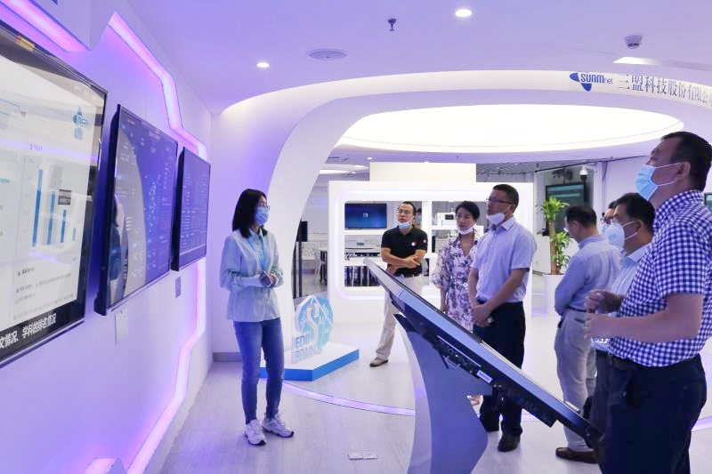 隨后,在三盟科技助理CEO孫國文的陪同下,深教促進(jìn)會考察團(tuán)一行參觀了公司辦公區(qū)、產(chǎn)品體驗中心等。期間,就三盟科技校園“教育大腦”系列產(chǎn)品作了詳細(xì)介紹,并圍繞智慧校園建設(shè)的成果與經(jīng)驗作了分享交流。