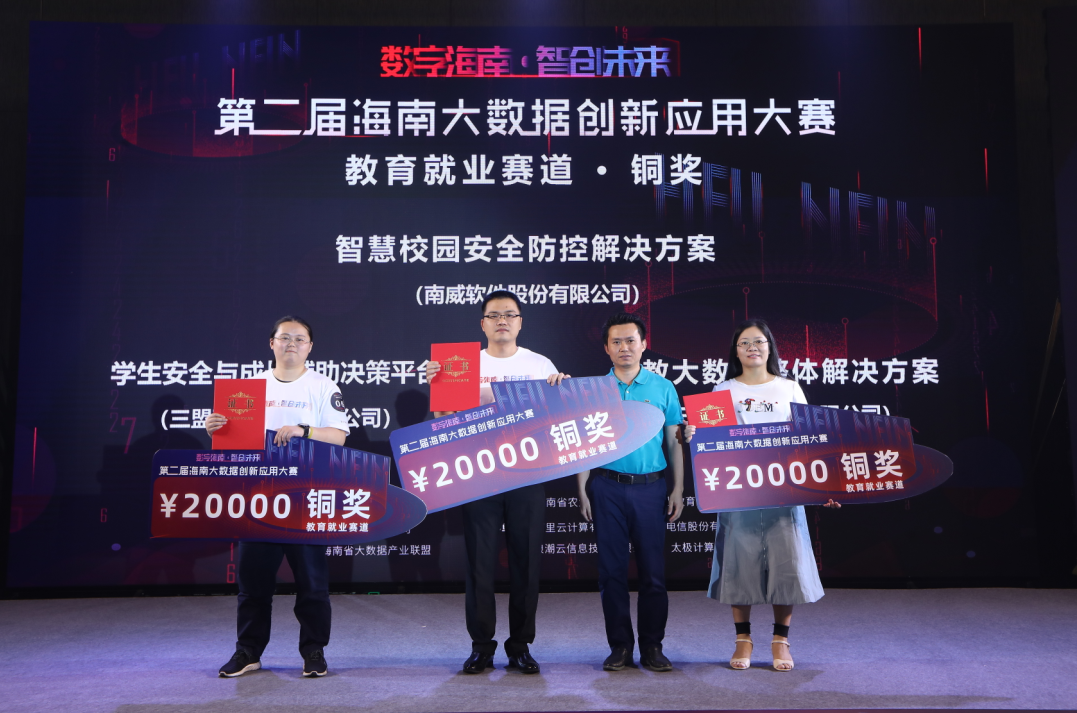 本次大賽總共吸引1664支隊伍參賽,歷經半年時間緊張激烈的角逐,僅有35支隊伍殺出重圍,進入總決賽。最終,三盟科技申報的“AIoD學生安全與成長輔助決策平臺”及“普教大數(shù)據(jù)整體解決方案”分別榮獲教育就業(yè)賽道銅獎。
