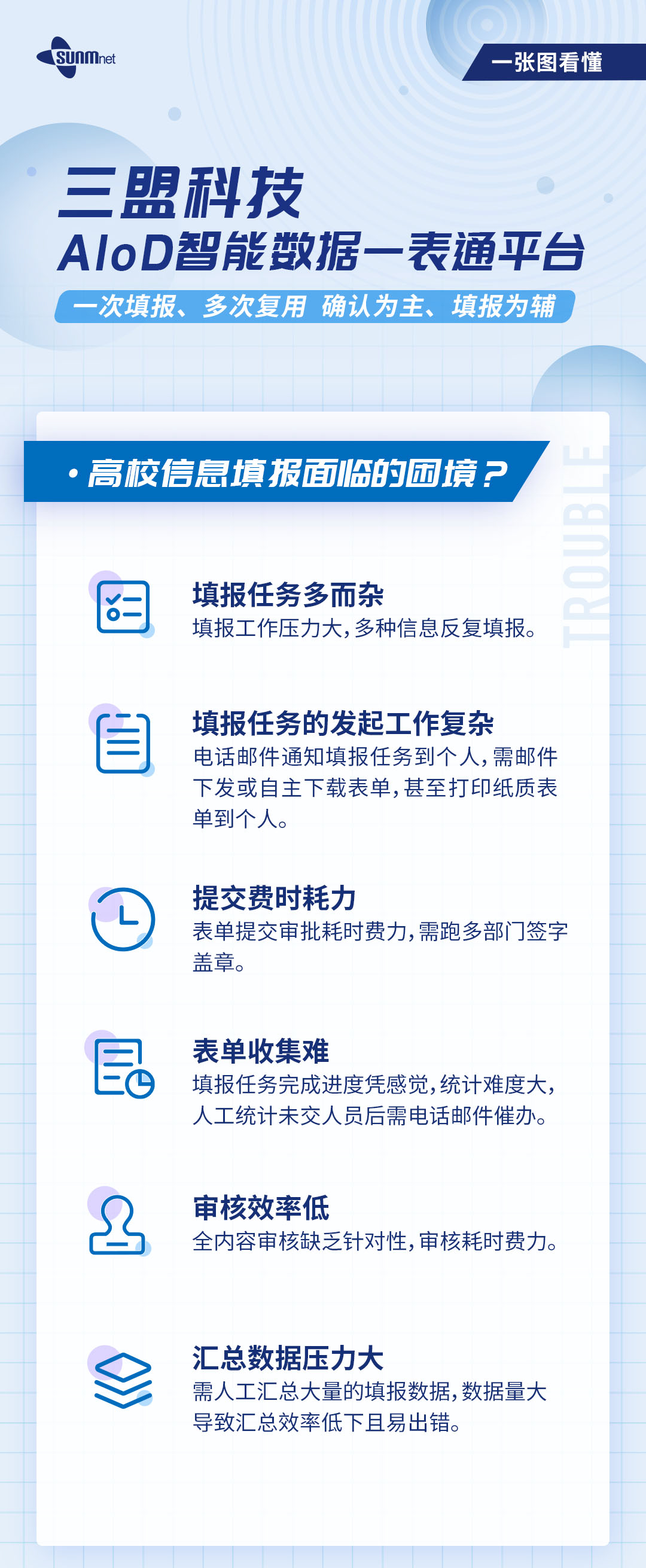 三盟科技股份有限公司(簡稱三盟科技)是一家專注AI+大數(shù)據(jù)技術(shù),專注教育,將AI+大數(shù)據(jù)技術(shù)與教育行業(yè)應(yīng)用場景深度融合,自主創(chuàng)新研發(fā),為教育數(shù)字化提供整體解決方案的軟件技術(shù)服務(wù)商。