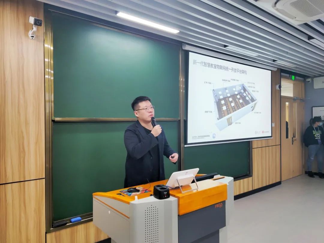會上,陳冬表示,AIoT智慧教室物聯(lián)網(wǎng)統(tǒng)一開放平臺(簡稱“智校”)采用物聯(lián)網(wǎng)、AI、大數(shù)據(jù)等技術(shù),實(shí)現(xiàn)對教室場景的智能化管理及控制,將有助于教室管理質(zhì)量實(shí)現(xiàn)新跨越。此外,他還就智校的四大核心優(yōu)勢作重點(diǎn)介紹。