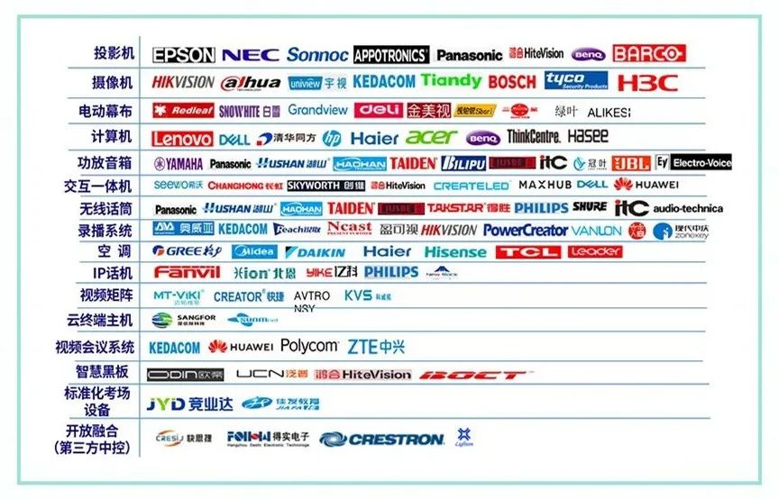 智校平臺支持自定義控制設(shè)備接口,擁有同類平臺難以企及的兼容性,既能接管第三方設(shè)備及平臺,還能實(shí)現(xiàn)數(shù)據(jù)的互通有無。其兼容性在市場表現(xiàn)上尤為亮眼,已兼容產(chǎn)品共15大類、102個品牌、1020余種設(shè)備。
