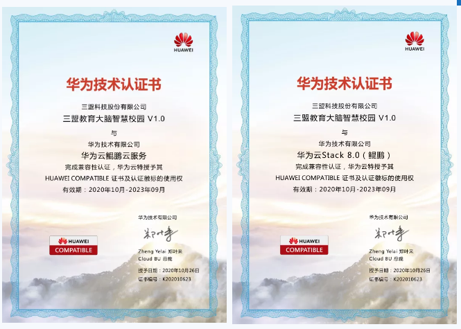 在兼容性方面,三盟科技教育大腦智慧校園解決方案的表現(xiàn)更是出色,順利完成華為云鯤鵬云服務(wù)、華為云Stack 8.0(鯤鵬)的兼容性測(cè)試,獲得華為云鯤鵬云服務(wù)和華為云Stack8.0的雙兼容性認(rèn)證。