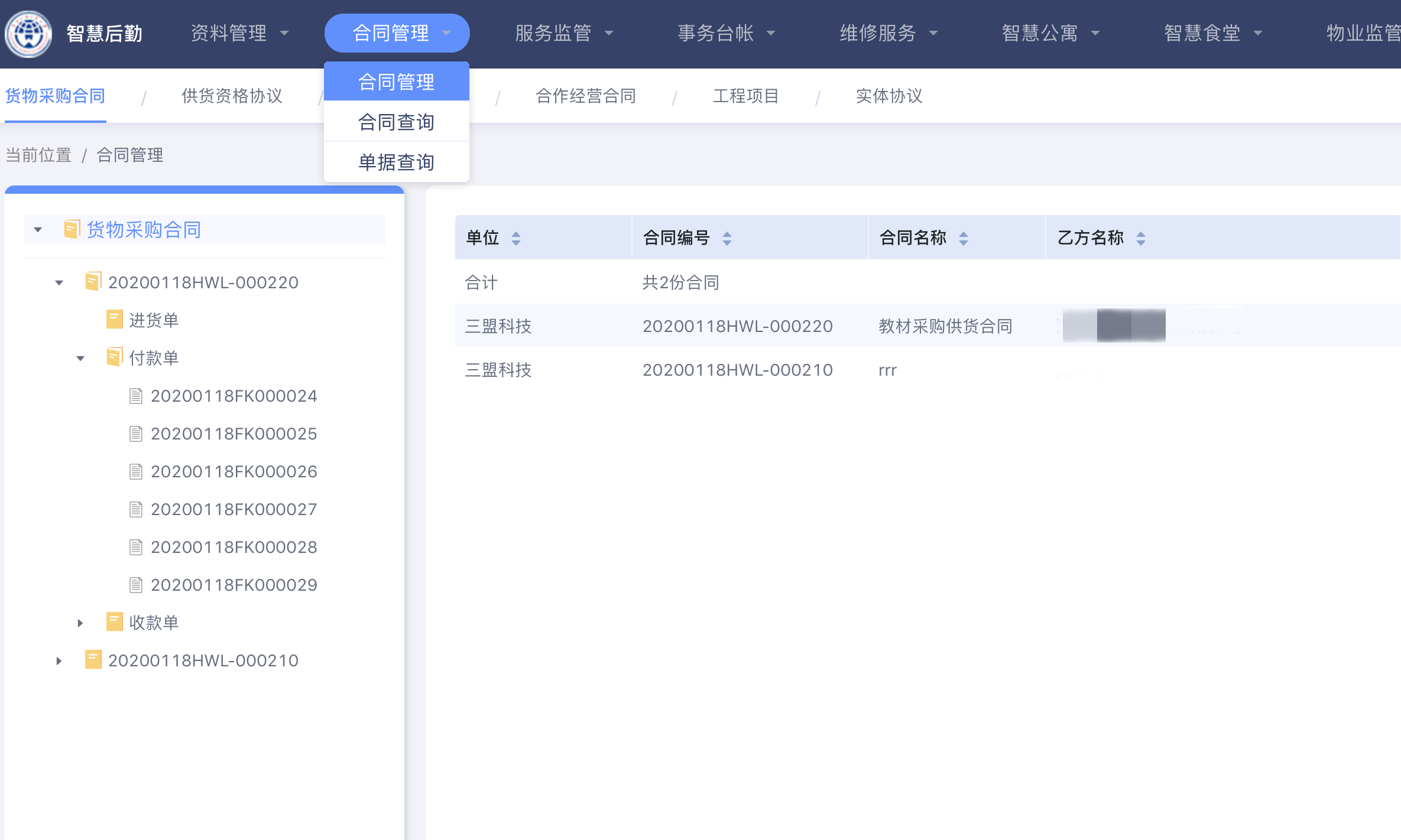 在后勤管理中,合同管理是極易出現(xiàn)疏漏的環(huán)節(jié)。合同量大,一旦出現(xiàn)審批不及時,容易造成招標(biāo)延誤,服務(wù)斷檔等問題。合同管理平臺通過將各類合同及單據(jù)進(jìn)行線上審批,并設(shè)置提醒機(jī)制保證審批工作快速完成,有效促進(jìn)合作、付款及收貨工作的高效達(dá)成。能耗監(jiān)控平臺包含商戶繳費、師生繳費、空調(diào)申請、電話申請等模塊。該平臺解決了能源監(jiān)管的盲區(qū),通過統(tǒng)一監(jiān)管,為學(xué)校節(jié)約能源,節(jié)省成本。值得關(guān)注的是,后勤工作除了硬件及應(yīng)用性建設(shè)之外,對留存數(shù)據(jù)的挖掘和再利用也是重中之重。三盟通過建立大數(shù)據(jù)平臺,幫助廣外留存有價值的數(shù)據(jù)并進(jìn)行更深層分析,有效提升解決學(xué)??缦到y(tǒng)的數(shù)據(jù)分析及預(yù)測能力。此外,智慧后勤平臺還提供了移動端入口。管理員除了可在網(wǎng)頁端開展后勤管理工作外,還可通過手機(jī)APP進(jìn)行遠(yuǎn)程管理,保障后勤服務(wù)的及時性。同時,也相當(dāng)于為全校師生提供了“移動后勤辦事大廳”,通過手機(jī)APP就能享受預(yù)約、申請、投訴、維修、繳費等多種后勤服務(wù)。