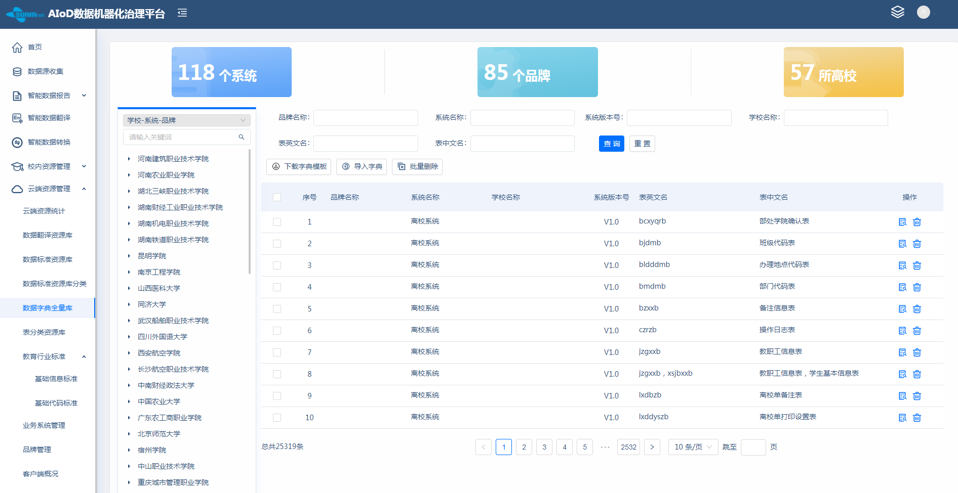 三盟科技AI數(shù)據(jù)機(jī)器化治理平臺(tái)通過從500多所院校的遷移學(xué)習(xí)和訓(xùn)練,積累了海量的數(shù)據(jù)字典和數(shù)據(jù)標(biāo)準(zhǔn)。在治理過程中,能通過云端數(shù)據(jù)庫進(jìn)行智能匹配,快速解決部分業(yè)務(wù)系統(tǒng)缺乏準(zhǔn)確的數(shù)據(jù)字典的問題,并實(shí)現(xiàn)源數(shù)據(jù)資源與校本標(biāo)準(zhǔn)數(shù)據(jù)項(xiàng)的智能匹配推薦,大大減少人力消耗。