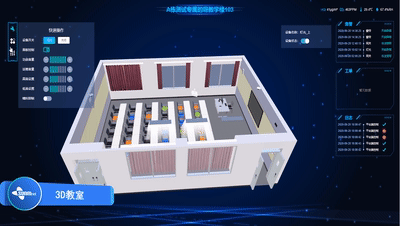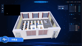 智校4.0不僅做到了對(duì)學(xué)校園區(qū)、教室樓棟、教室的三維建模,還實(shí)現(xiàn)對(duì)教室內(nèi)教學(xué)設(shè)備的運(yùn)動(dòng)狀態(tài)、交互形式、軟件結(jié)合控制算法等信息的全數(shù)字化建模。通過管理后臺(tái),管理人員就能看到“迷你版”的校園3D全景,各教學(xué)樓、教室的教室使用情況、設(shè)備狀態(tài)全盤掌握。