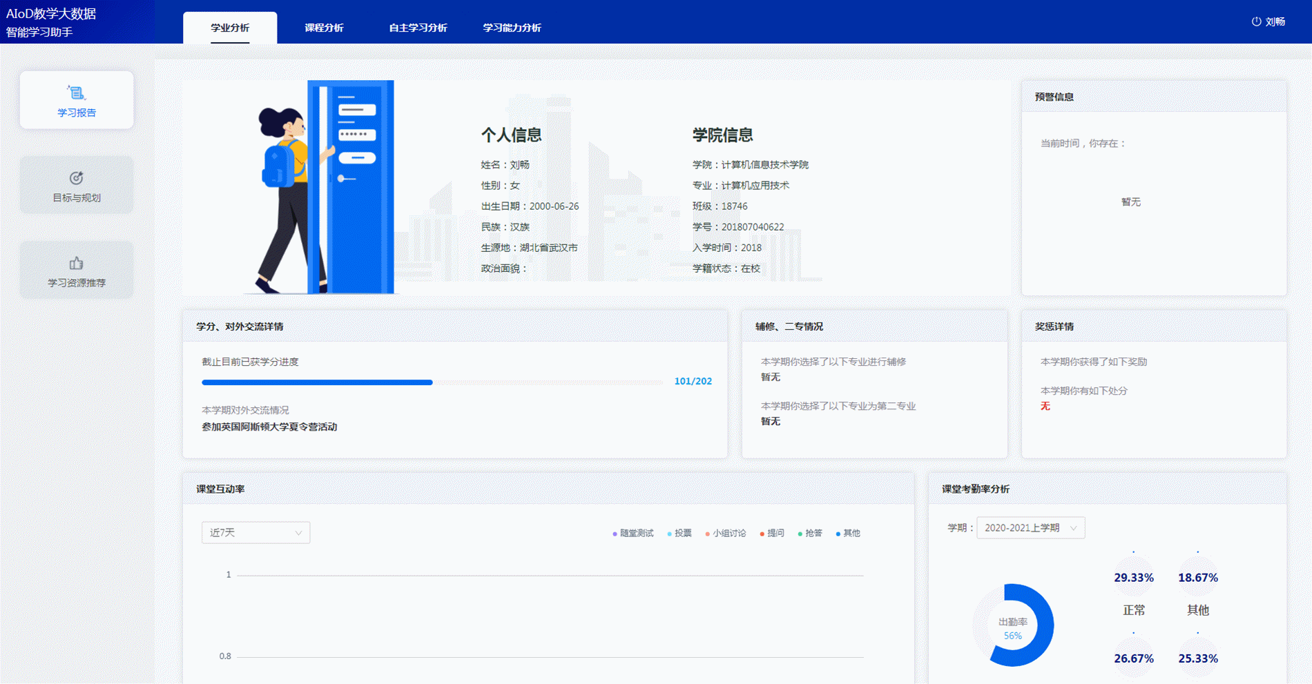該系統(tǒng)融合智能決策助手、智能教學(xué)助手、智能學(xué)習(xí)助手3大子平臺(tái),為學(xué)生提供個(gè)性化學(xué)習(xí)服務(wù),輔助教師提升教學(xué)質(zhì)量、幫助校領(lǐng)導(dǎo)以數(shù)據(jù)為支撐進(jìn)行科學(xué)決策。