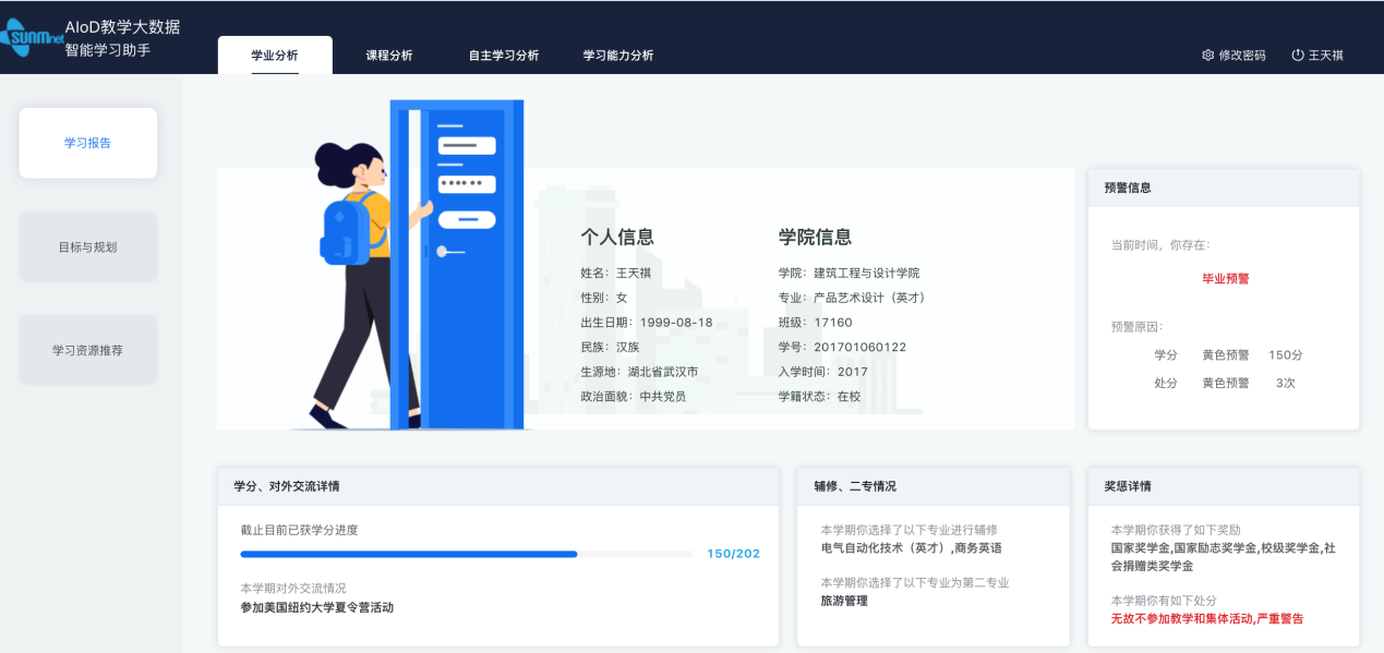 智能學(xué)習(xí)助手系統(tǒng)堪稱學(xué)生的“學(xué)習(xí)規(guī)劃師”,擅長(zhǎng)對(duì)學(xué)生基本信息、學(xué)習(xí)成績(jī)、學(xué)習(xí)行為、行為軌跡等數(shù)據(jù)進(jìn)行綜合分析,構(gòu)建學(xué)生綜合畫像。