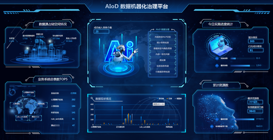 2)數(shù)據(jù)治理機(jī)器化:業(yè)界首創(chuàng)的數(shù)據(jù)治理機(jī)器人,可極大提升數(shù)據(jù)治理服務(wù)水平,通過(guò)機(jī)器自動(dòng)治理及人機(jī)交互的操作方式,節(jié)約了60%-70%數(shù)據(jù)治理時(shí)間。