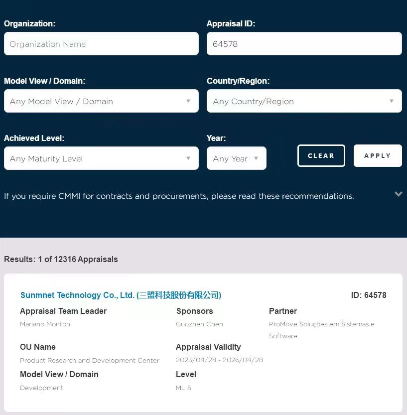 此次三盟科技再次獲得CMMI5級認(rèn)證,是三盟科技在軟件研發(fā)領(lǐng)域不懈創(chuàng)新所結(jié)出的碩果,同時也是研發(fā)管理體系和服務(wù)交付體系持續(xù)標(biāo)準(zhǔn)化、規(guī)范化、國際化的重要標(biāo)志,為未來三盟科技技術(shù)、產(chǎn)品與解決方案的持續(xù)創(chuàng)新和升級筑牢了深厚基石。