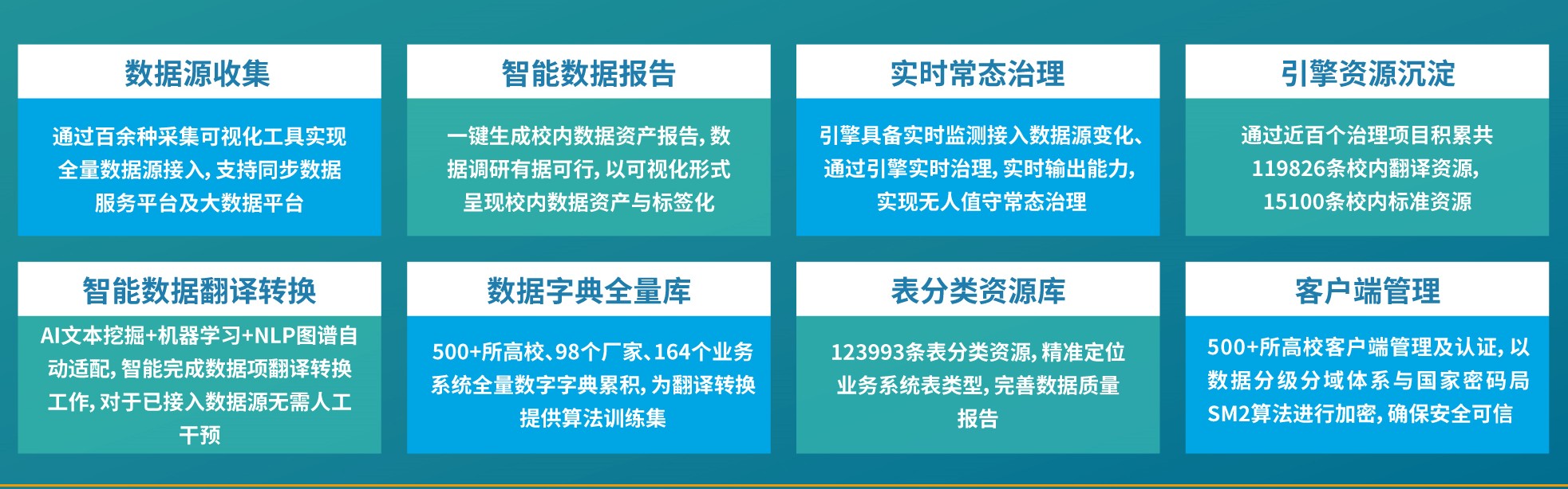 AI機(jī)器化治理平臺通過從500多所院校的遷移學(xué)習(xí)和訓(xùn)練,積累了海量的數(shù)據(jù)字典和數(shù)據(jù)標(biāo)準(zhǔn)。在治理過程中,借助云端數(shù)據(jù)庫進(jìn)行智能匹配,快速解決部分業(yè)務(wù)系統(tǒng)缺乏準(zhǔn)確的數(shù)據(jù)字典的問題,并實(shí)現(xiàn)源數(shù)據(jù)資源與校本標(biāo)準(zhǔn)數(shù)據(jù)項(xiàng)的智能匹配推薦,減輕70%的數(shù)據(jù)治理工作量。