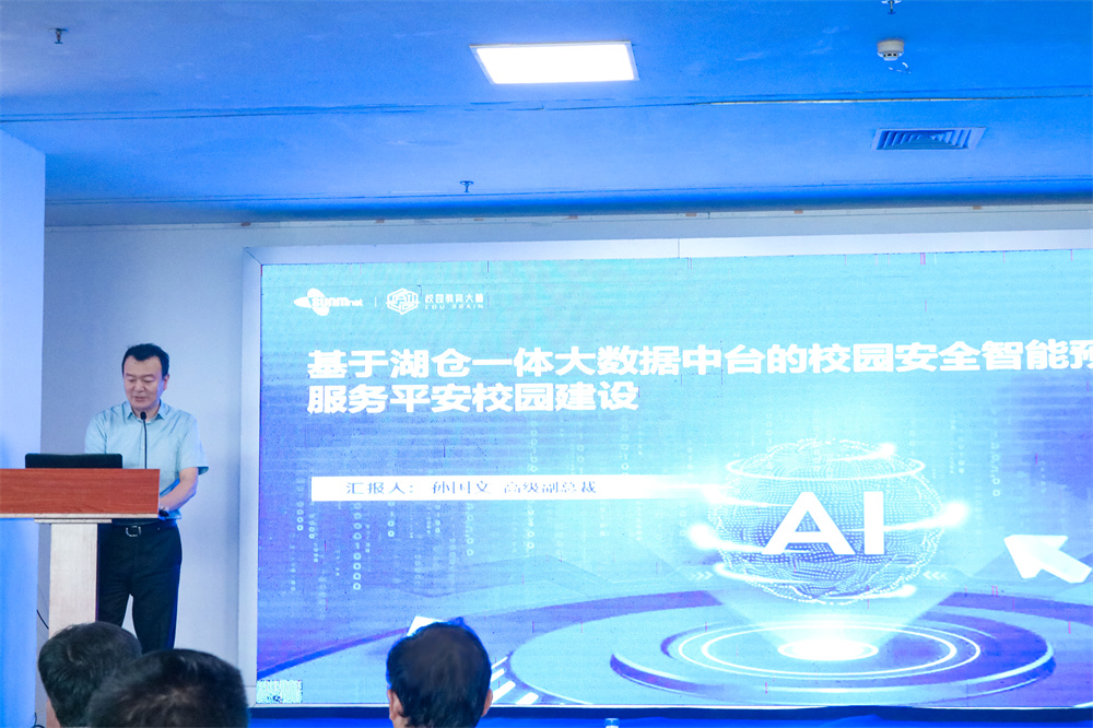 會上,三盟科技高級副總裁孫國文帶來《基于湖倉一體大數(shù)據(jù)中臺的校園安全智能預(yù)警預(yù)測平臺 服務(wù)平安校園建設(shè)》的主題報告。