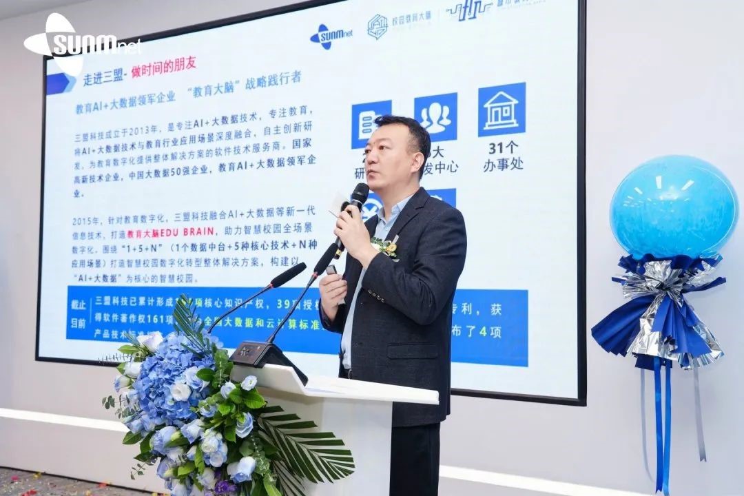 三盟科技董事長(zhǎng)王喜英向前來(lái)參加慶典的各位嘉賓致以衷心的感謝。同時(shí)表達(dá)了對(duì)三盟科技未來(lái)發(fā)展的決心和信心。未來(lái),三盟科技的技術(shù)重心將從以“大數(shù)據(jù)+教育”為主,逐步轉(zhuǎn)向以“AI+教育”為主。面向群體將從B端逐步向C端擴(kuò)大,為全齡段學(xué)生群體提供教育AI產(chǎn)品,為學(xué)生的健康成長(zhǎng)、精準(zhǔn)學(xué)習(xí)、精準(zhǔn)就業(yè)等方面保駕護(hù)航。相信在多維度、多舉措的布局之下,三盟科技將迎來(lái)全速發(fā)展的新階段,推動(dòng)企業(yè)發(fā)展的巍巍巨輪乘風(fēng)破浪、行穩(wěn)致遠(yuǎn)。