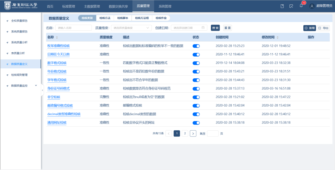 數(shù)據(jù)質(zhì)量的好壞關(guān)乎數(shù)據(jù)分析結(jié)果的準(zhǔn)確性,從而影響決策。為保障數(shù)據(jù)質(zhì)量,廣財(cái)還建設(shè)了數(shù)據(jù)質(zhì)量管理體系。通過(guò)監(jiān)測(cè)數(shù)據(jù)質(zhì)量、處理異常數(shù)據(jù),再將數(shù)據(jù)質(zhì)量報(bào)告反饋給相應(yīng)的業(yè)務(wù)部門,形成數(shù)據(jù)質(zhì)量改善的閉環(huán),推動(dòng)數(shù)據(jù)質(zhì)量不斷提升,支撐各相關(guān)業(yè)務(wù)的高速運(yùn)轉(zhuǎn)。
