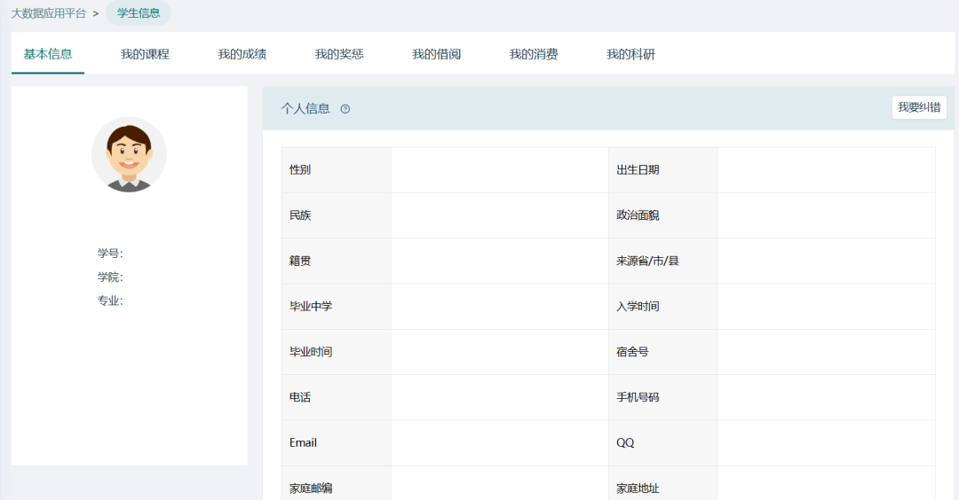 “學(xué)生一張表”主要通過(guò)數(shù)據(jù)呈現(xiàn)全校學(xué)生的在校生活狀態(tài)及學(xué)習(xí)成果,包含學(xué)生的基本信息、課程、成績(jī)、獎(jiǎng)懲、消費(fèi)等方面的信息,便于針對(duì)性進(jìn)行學(xué)生學(xué)習(xí)及成長(zhǎng)指導(dǎo)。