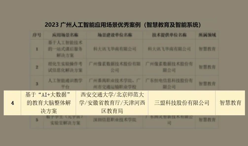 三盟科技“基于‘AI+大數(shù)據(jù)’的教育大腦整體解決方案”作為智慧教育領(lǐng)域的參選案例,依托突出的應(yīng)用成果,成功登榜!
