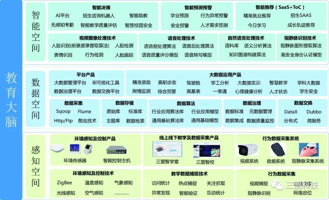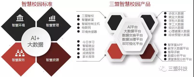 2018年,三盟科技發(fā)布“教育大腦”戰(zhàn)略,助推高校實現(xiàn)智慧管理、智慧服務(wù)、智慧資源、智慧環(huán)境,助力高校實現(xiàn)個性化教學、精準化就業(yè)、科學化管理。