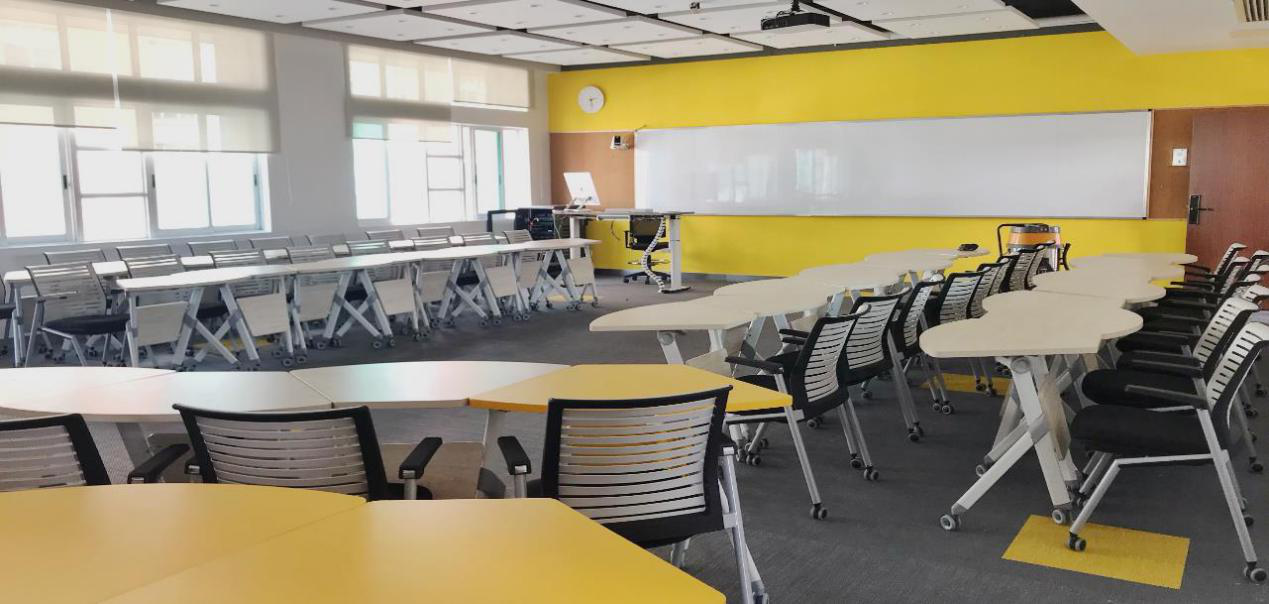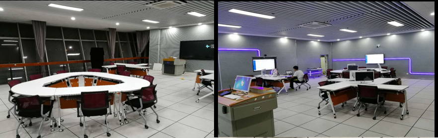 采用互動大屏加教學(xué)互動平臺,搭配多形態(tài)組合可移動桌椅的方式來進行教學(xué),互動大屏和教學(xué)互動平臺保證了教學(xué)的交互性和網(wǎng)絡(luò)性,而多形態(tài)組合可移動桌椅很好地滿足了課堂分組討論的教學(xué)需要,方便將教學(xué)內(nèi)容進行分屏顯示以及分組討論時各組單獨演示,既可以實現(xiàn)集中授課,又可以實現(xiàn)分組研討、單獨演示,拉近了師生距離、促進了互動交流。