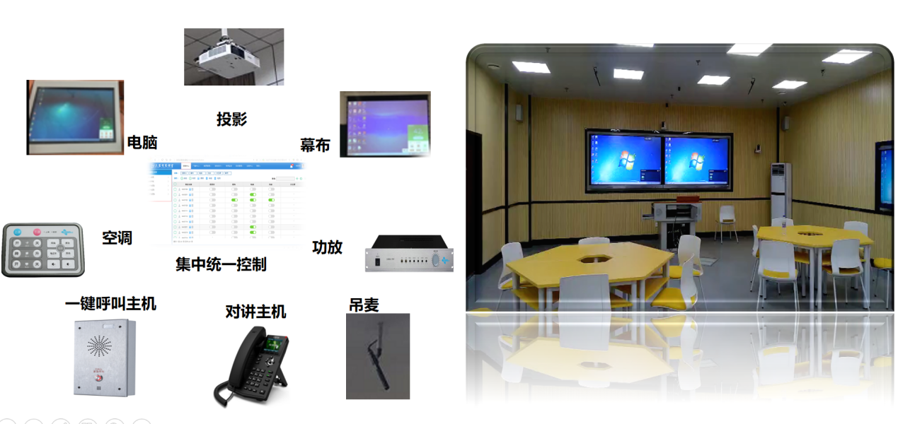 包含教學(xué)設(shè)備管理、教室使用管理、集控錄播錄制管理、信息發(fā)布管理、遠(yuǎn)程交互管理等系統(tǒng),采用拼接屏進行多屏展示,可以讓管理者實時遠(yuǎn)程查看不同教室各種設(shè)備的完好情況,并可遠(yuǎn)程控制各種設(shè)備,該平臺與教學(xué)管理系統(tǒng)對接,并可通過一鍵尋呼系統(tǒng)尋求遠(yuǎn)程救助,管理者在主控室可實時查看教室的排課情況與使用情況。