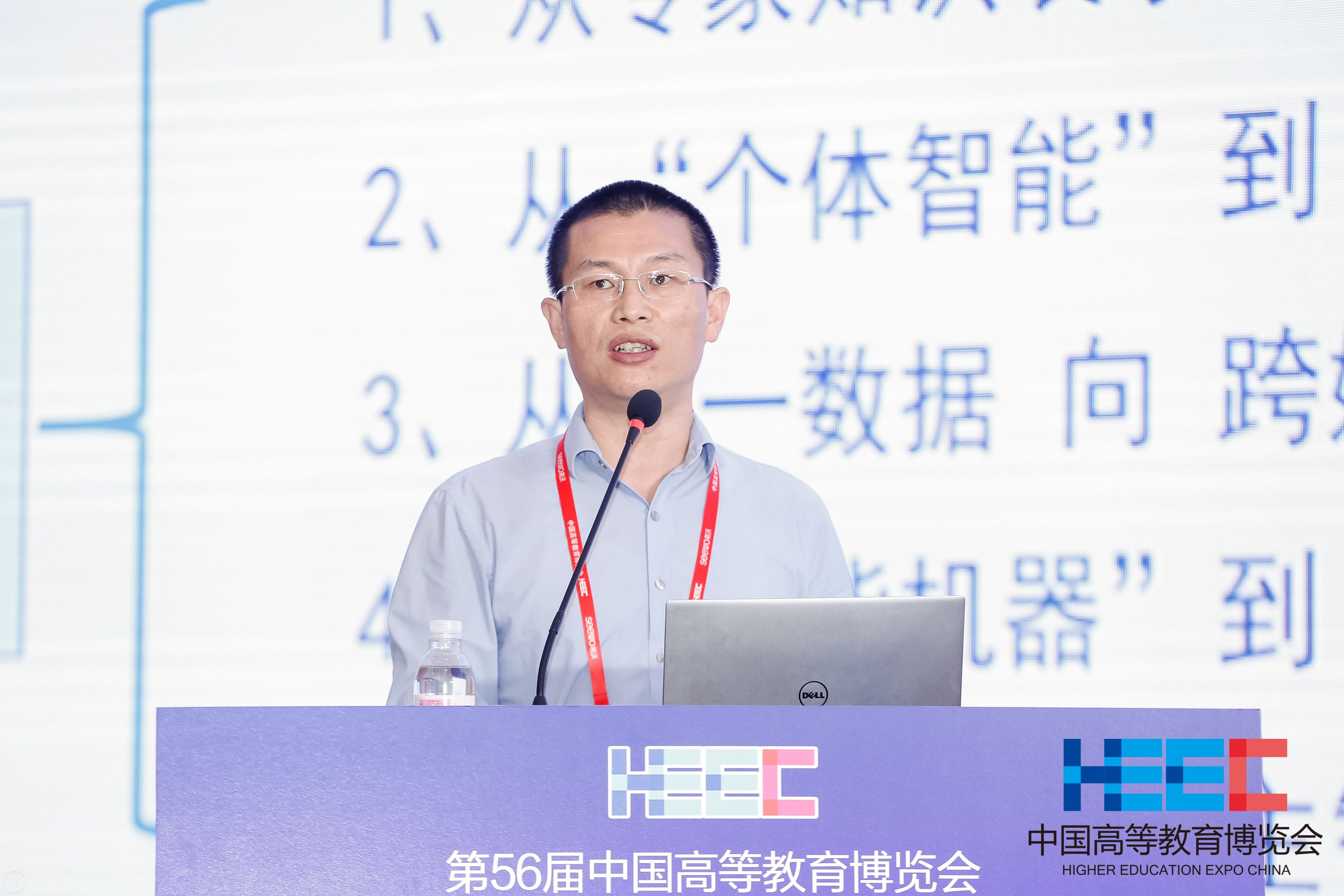 中國高等教育學(xué)會副會長、國家民委原副部長級專職委員管培俊,教育部科學(xué)技術(shù)與信息化司副司長舒華,山東省教育工委副書記、省教育廳黨組副書記、副廳長白皓出席論壇并致辭。中國工程院院士、清華大學(xué)網(wǎng)絡(luò)研究院院長吳建平,華中師范大學(xué)副校長夏立新,中國海洋大學(xué)副校長李巍然,常熟理工學(xué)院黨委書記朱士中,中國教育技術(shù)協(xié)會人工智能專委會副理事長魏廣平,中山大學(xué)校長助理王帆,西安交通大學(xué)教授田鋒分別作專題報告。