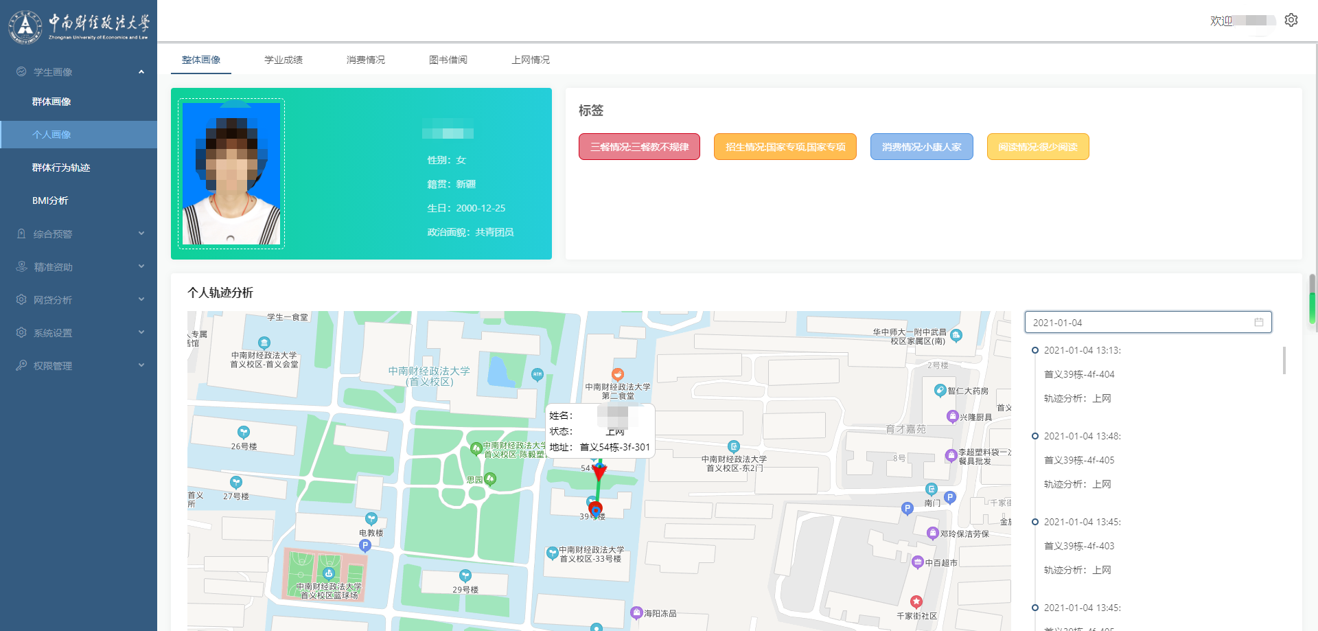 系統(tǒng)通過異常發(fā)現(xiàn)算法,提前發(fā)現(xiàn)學(xué)生失聯(lián)、未歸等異常情況,自動推送預(yù)警信息給管理人員。讓校方及時(shí)采取應(yīng)對措施,避免意外事故發(fā)生,為學(xué)生的人身安全保駕護(hù)航。