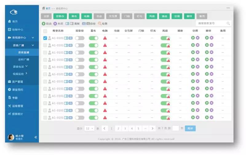多套系統(tǒng)融合為一,即一套系統(tǒng)融合師生考勤、信息發(fā)布、課室借用預(yù)約、視頻監(jiān)控、語(yǔ)音廣播、語(yǔ)音電話、設(shè)備巡檢、設(shè)備告警等功能