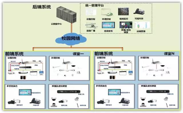 通過(guò)多系統(tǒng)融合將原來(lái)需要獨(dú)立建設(shè)的如:語(yǔ)音廣播、語(yǔ)音對(duì)講、視頻監(jiān)控等系統(tǒng)都通過(guò)軟件的方式整合到智慧課室管理平臺(tái)中。