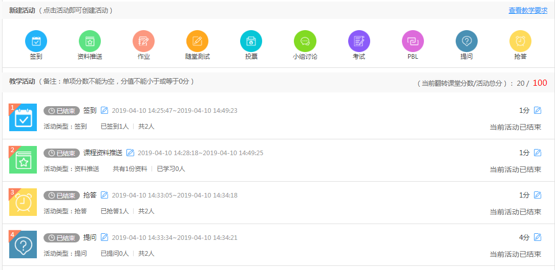 包括隨堂測試、投票、小組討論、
