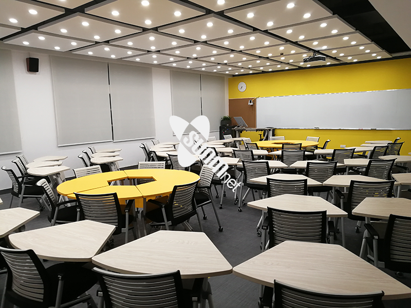 互動(dòng)課室采取階梯沉浸式設(shè)計(jì),可以有效提高位于教室側(cè)后方學(xué)生的注意力,賦予更多被老師關(guān)注的機(jī)會(huì),使學(xué)生自律同時(shí)增強(qiáng)和老師互動(dòng)。