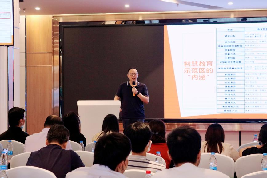 三盟科技華南區(qū)技術(shù)總監(jiān)張海鵬現(xiàn)場(chǎng)分享了三盟科技高教“教育大腦”。他以教育信息化政策為切入點(diǎn),從智慧管理、智慧環(huán)境、智慧服務(wù)、智慧資源等方面為高校智慧校園建設(shè)提供可行性思路。