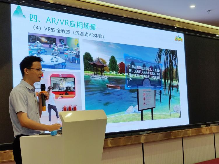 三盟科技普教系統(tǒng)部AR/VR產(chǎn)品總監(jiān)劉長(zhǎng)華帶來了“裸眼AR/VR賦能K12智慧教育”主題報(bào)告。他從“元宇宙”的概念延伸至AR/VR虛擬現(xiàn)實(shí)技術(shù)在語文課堂、科學(xué)課堂、實(shí)驗(yàn)課堂、創(chuàng)客課堂等實(shí)際場(chǎng)景的應(yīng)用,指出AR/VR技術(shù)助力現(xiàn)代教學(xué)模式深度變革。